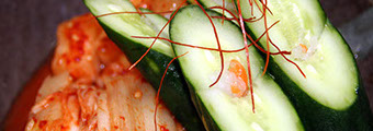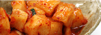 キムチ、カクテキ、オイキムチの三種盛りになります。
